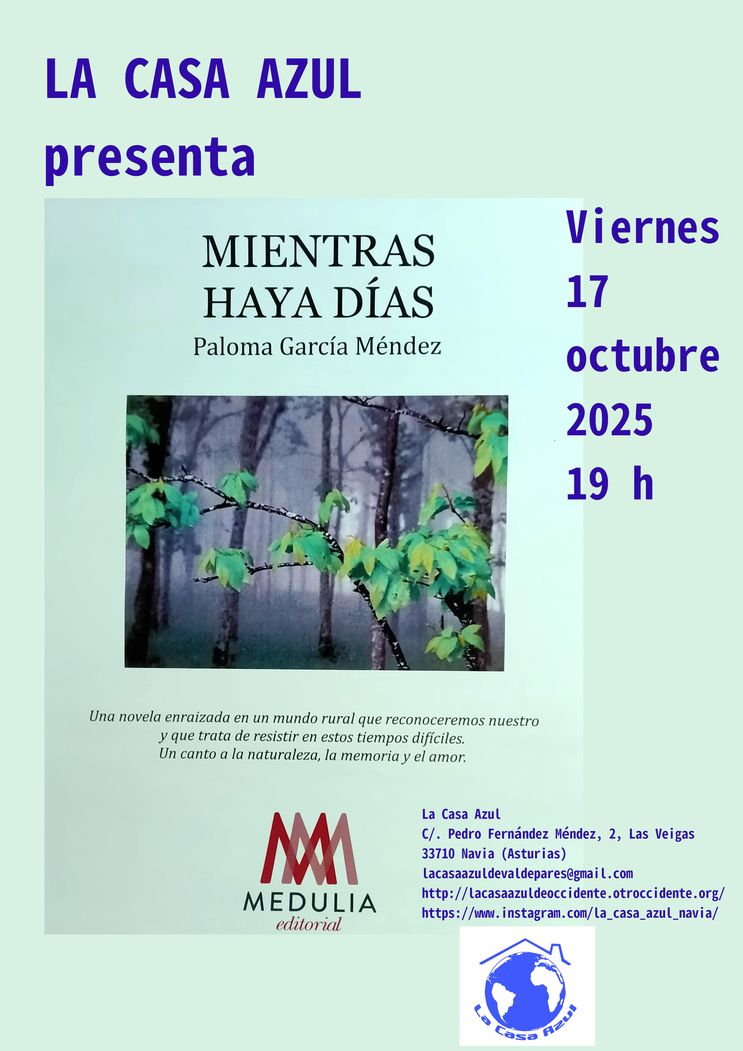 La novela “se centra en un mundo rural que mira hacia el futuro, negándose a desaparecer, y en la búsqueda de una vida cotidiana que valga la pena ser vivida” en palabras de la autora, Paloma García Méndez, quien estará con nosotres para hablarnos de su libro.